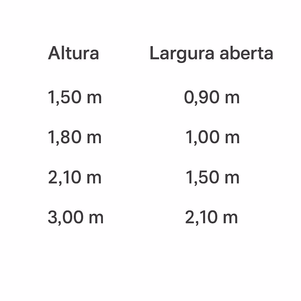 - Alturas disponíveis: 1,50 m | 1,80 m | 2,10 m | 3,00 m