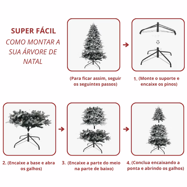 Com nosso passo a passo simples, você garante uma montagem fácil, rápida e com acabamento profissional — os galhos ficam bem abertos, simétricos e aproveitam 100% do potencial da árvore.