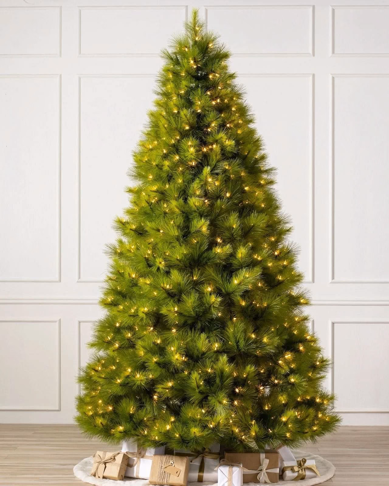 Árvore de Natal Verde Monterey Pine com Galhos Longos, Suporte Metálico e Micro LEDs Embutidos
