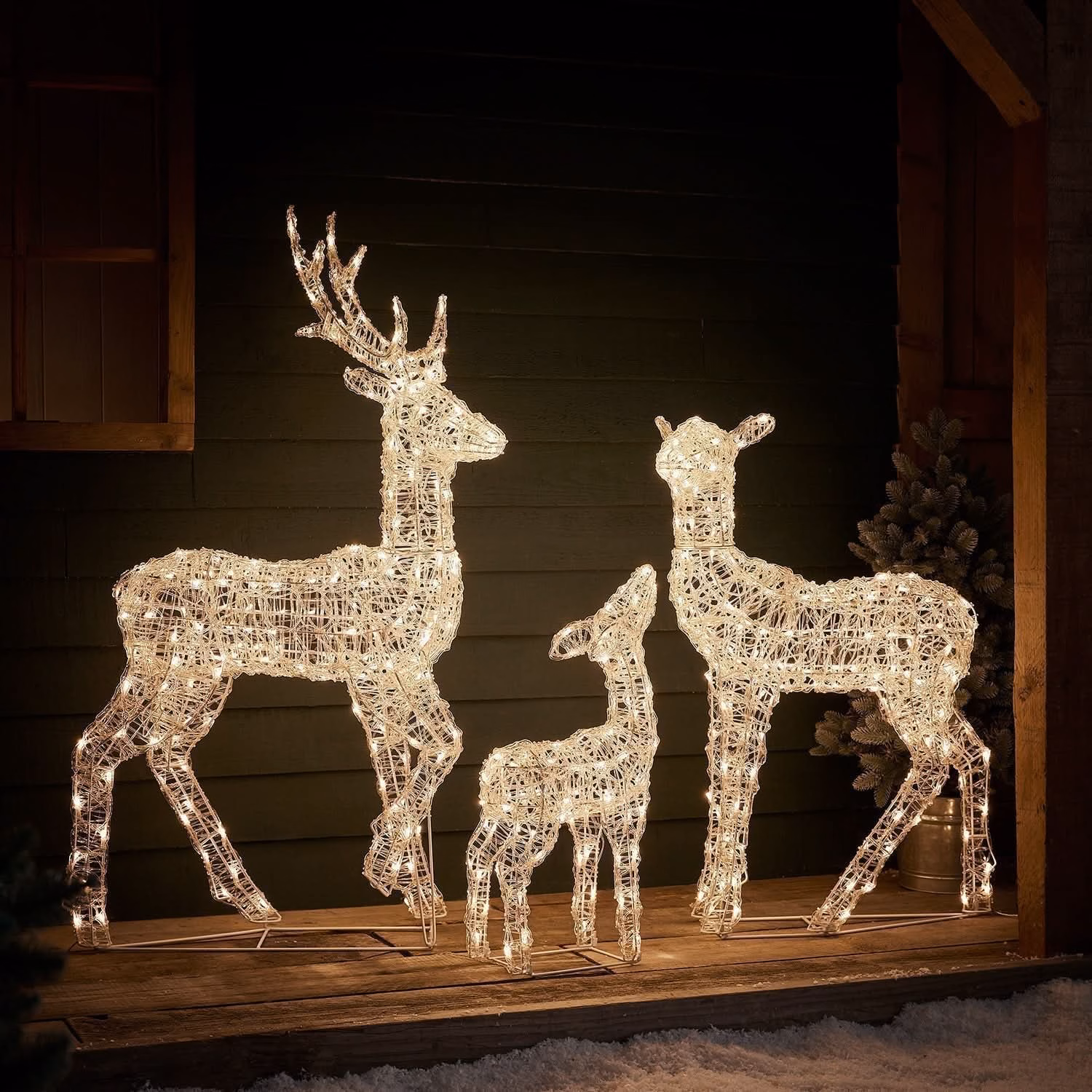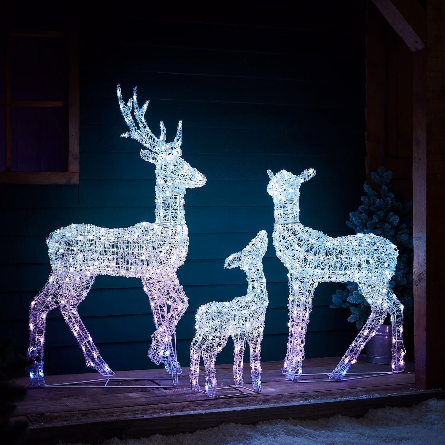 Crie uma atmosfera natalina verdadeiramente mágica com o Conjunto Twinkly de Renas Iluminadas com LED RGB. Essa charmosa família de renas foi desenvolvida com a tecnologia exclusiva Twinkly, que oferece controle inteligente via aplicativo, até 16 milhões de cores, efeitos animados pré-definidos e até mesmo a possibilidade de criar seus próprios designs de iluminação. Compatíveis com Google Assistant e Amazon Alexa, essas renas trazem inovação e sofisticação para a sua decoração de Natal.