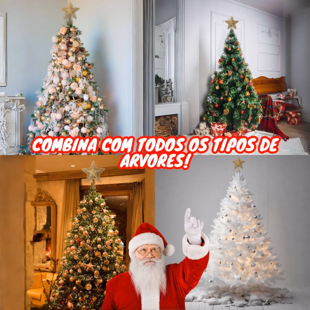 Estrela 24cm Brilhante Aramada Com Glitter Para Árvore De Natal Metalizado